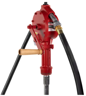 El modelo FR112 es una bomba de transferencia de combustible de uso intensivo y manual que suministra 38 litros por cada 100 rotaciones. Este conjunto de bomba y accesorios incluye una manguera, boquilla, tubo de aspiración y componentes de instalación.