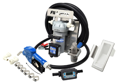 El modelo DF012CAT520B es una bomba de transferencia de DEF de 12V, Entrada y salida de 1"; Presión máxima: 38 PSI para DEF y agua no potable. Ciclos de 30minutos Entrega hasta 30 LPM . Este conjunto de bomba y accesorios incluye un soporte de acero inoxidable IBC, medidor, manguera de succión, manguera de descarga, boquilla automática y todos los accesorios necesarios para la instalación.