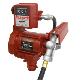 El modelo FR701VGL es una bomba de transferencia de combustible de alta resistencia de 230V CA y 75 LPM. Este conjunto de bomba con conexión de 3/4" NPT y accesorios incluye una manguera, cuenta litros mecánico 807CL, pistola manual y componentes de instalación.