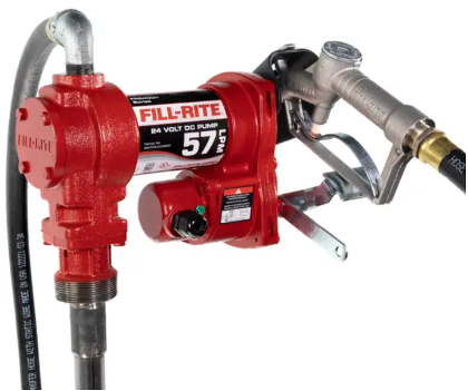 Bomba de transferencia de combustible de 24V de hierro fundido y alta resistencia con paletas giratorias capaz de generar hasta 56LPM. Está diseñado para manejar líquidos inflamables como gasolina, diésel y queroseno. El motor de la bomba utiliza un bajo consumo de amperios y está protegido térmicamente para evitar el sobrecalentamiento. El modelo FR2410H está disponible con pistola manual de 3/4", manguera de combustible de 3mts, tubo de succión telescópico de acero de 20" a 34"; Entrada y salida 3/4" NPT. Fabricado en EE. UU. con un motor homologado por UL/cUL y garantía limitada de por vida, este producto es ideal para agricultura, construcción y cualquier industria que requiera transferencia de combustible móvil.