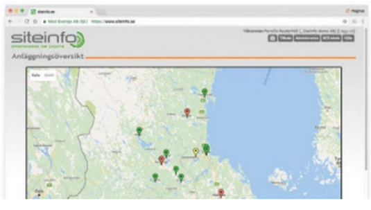 acceso a sus sitios, sus derechos de usuario y podrá crear nuevas cuentas de usuario. También podrás editar usuarios, contactos y productos. Con SiteInfo y su funcionalidad de mapas, usted podrá obtener una descripción general de los tanques que ha conectado al Servicio con niveles de alarma y aviso. Si se activa una alarma Podrás ver el sitio en el que un tanque ha disparado una alarma mostrado en el mapa.