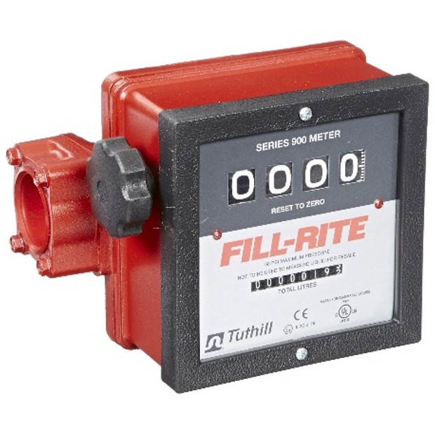 El medidor de flujo mecánico 901CL1.5 cuenta con una pantalla grande y de fácil lectura, los puertos de flujo se pueden colocar en forma vertical u horizontal, está homologado por UL/cUL, se puede utilizar con fluidos de cualquier viscosidad, y tiene capacidad para funcionar con gasolina, diesel, queroseno, alcoholes minerales, solventes Stoddard y heptano. Los medidores Fill-Rite brindan precisión y durabilidad con un diseño rentable. El medidor 901CL1.5 es un medidor mecánico de 4 dígitos diseñado para bombas de transferencia con un caudal nominal de 23 a 151 LPM. Este medidor tiene entrada y salida de 1.5.